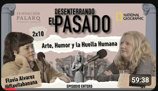 This is one of the chapters of the videopodcast Desenterrando el Pasado, presented by Candela Antón de Vez, in collaboration with Fundación Palarq and Historia National Geographic. The aim of this podcast series is to engage the public with archaeology and human history by connecting past and present. Each episode brings together archaeologists and contemporary voices—such as influencers, writers, or cultural figures—to create accessible and engaging conversations that make the past meaningful in today’s world. In this chapter, archaeologist and rock art specialist Inés Domingo joins forces with the renowned cartoonist Flavita Banana to reflect on fundamental questions such as What is art? When does it begin? What does it mean? Drawing on their own experiences and knowledge, they explore how the creation of shared codes is essential for art to carry meaning and to serve as a bridge of communication within human societies.